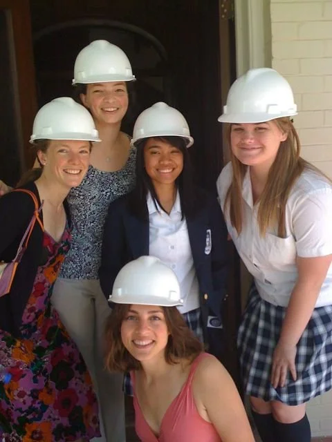 The Albers Trio, brought to Providence by the San Antonio Music Chamber Music Society, performed for the middle school division and then toured the Najim Campus Center. Read about their experience at Providence by going to their blog. Of note, Eileen (Doyle) Lundin, Providence class of ’59 was their host. She is the Publicity Committee Chairman for the SA Music Chamber Society and enjoyed showing the trio her class picture while reminiscing about past Providence adventures. They enjoyed their visit to Providence and posted their thoughts on their website blog, as well as a great picture in hard hats which they got a kick out of. Check it out!
