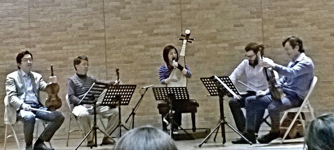 On Monday February 29 at noon, the Shanghai Quartet, along with pipa virtuoso Wu Man, performed an hour-long concert in the beautiful Holly Auditorium on the UTHSCSA main campus. After being introduced by Dean of the Medical School, Dr. Francisco Gonzalez-Scarano, quartet members talked with the audience about the music they were playing. All of the works were by Chinese composers. Additionally Wu Man spoke about the pipa, explaining that it has been around for over 2,000 years, and pointing out how much considerably older it is than the frequently antique (300 years) violins, violas, and cellos that are used in quartets and symphonies. Wu Man played a beautiful solo work for pipa. The performers ended the program with the masterful Ghost Opera by living Chinese composer, Tan Dun.