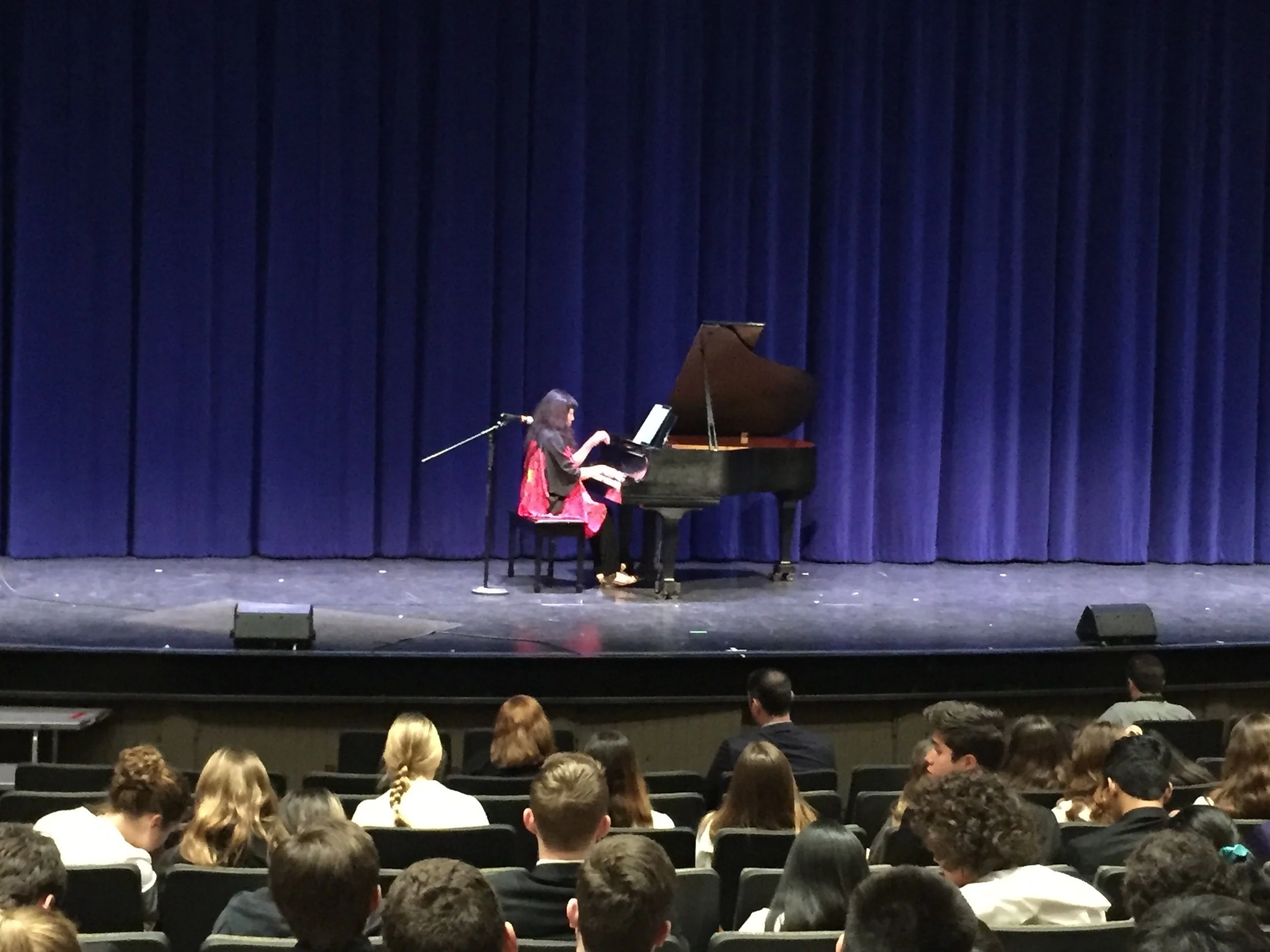 Following the Han-Setzer-Finckel Trio concert on Sunday April 28, pianist Wu Han gave a beautiful Outreach Concert at St. Mary’s Hall for around 250 students aged 14-17, faculty, and a handful of Chamber Music Society board members. Chaplain Cameron Gunnin set the scene beautifully with a vivid description of Wu Han that captured her multi-faceted career in a compelling way. The students were incredibly well-behaved, attentive, and respectful. It was obvious that they are well-shepherded by Chaplain Gunnin and the faculty at St. Mary’s Hall.